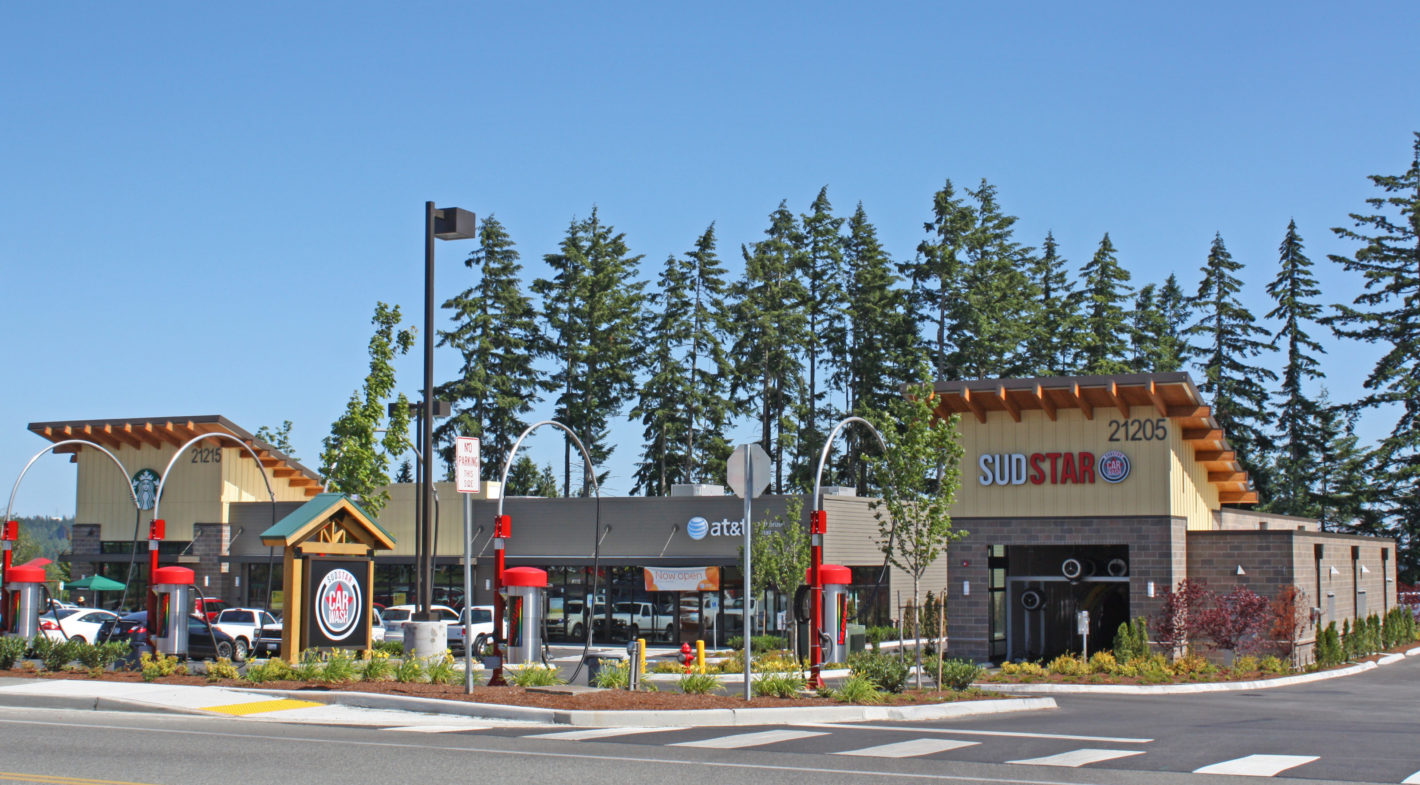 Located within the Olhava Retail Development in Poulsbo, Washington, this small retail center is anchored by Starbucks Coffee and Sud Star Car Wash. The design blends masonry and heavy timber construction while conforming to the Olhava design guidelines.